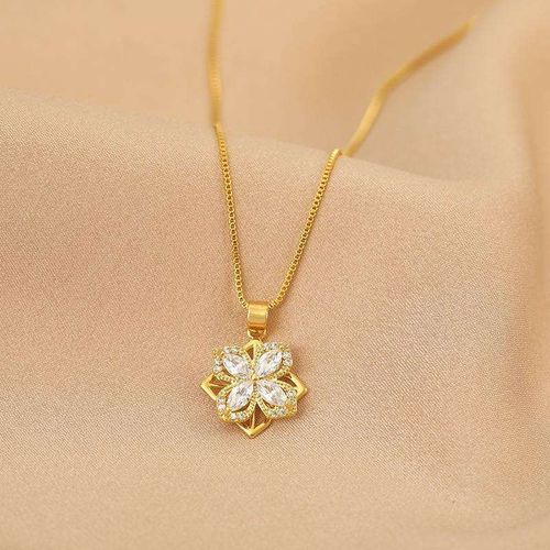 Creative Golden Five-petal Flower Necklace, Moissanite Inlaid, Titanium Steel Gold-plated Craft, Light Luxury Style, Versatile & Fashionable.